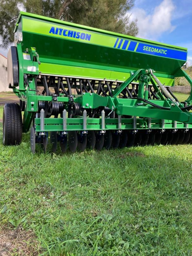 Ready for all of your sowing and fertiliser needs, the Aitchison Seedmatic featuring 14 inch disc coulters and T boot tines on 5 inch spacing is ready for all conditions from direct drilling into existing pastures to cultivated soils.