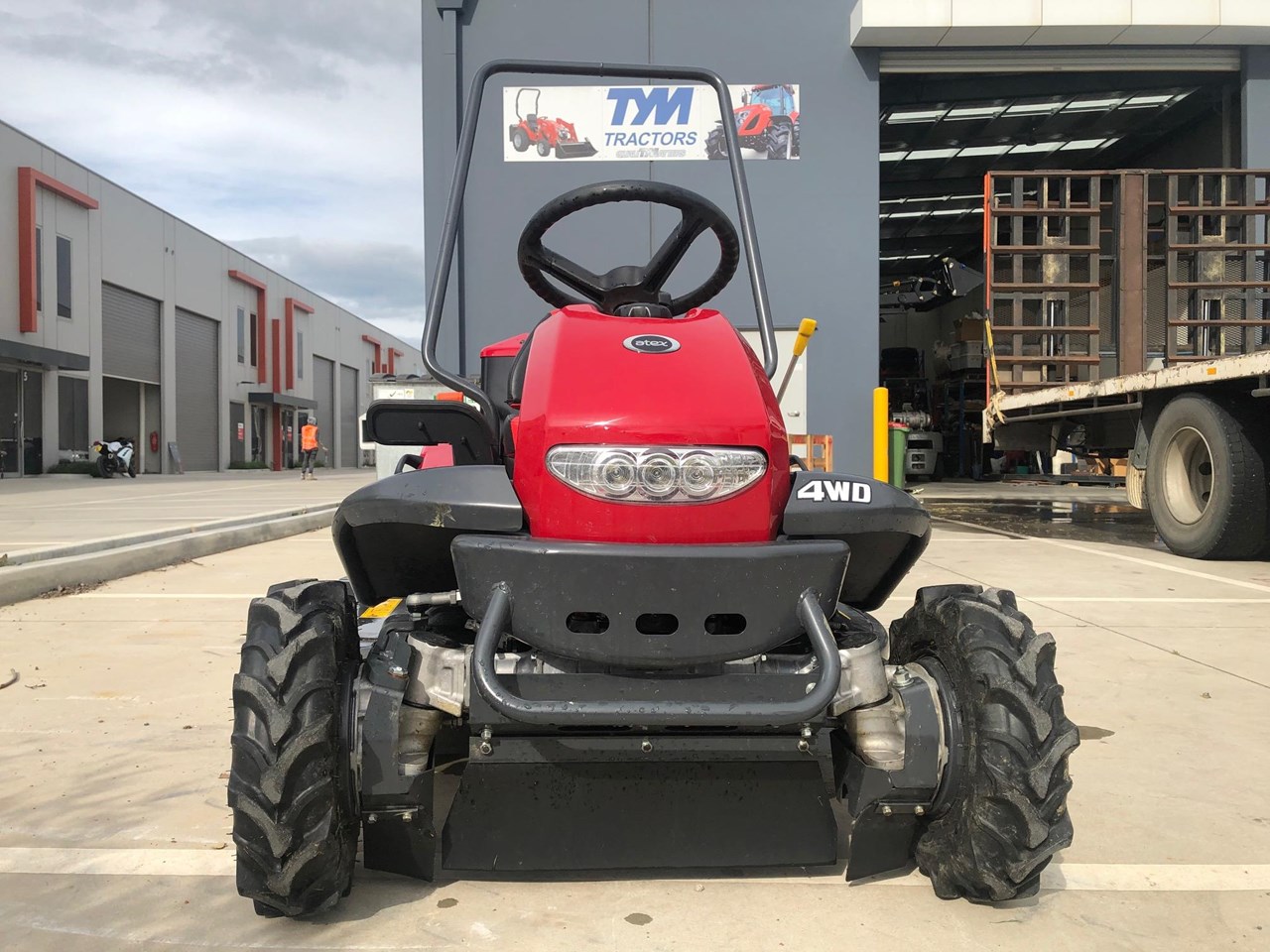 Japanese made ATEX 4wd Brush cutting Mower is a 24 HP Commercial Mower with a Kawasaki engine for changeling property slopes and angles.