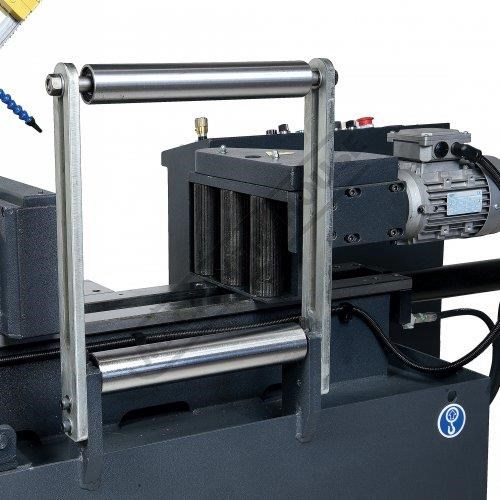 Both blade control arms are adjustable, allowing them to be positioned as close to the cut as possible, this means reliability and accurate square cuts is easily achieved. There is a built-in coolant system that ensures maximum cutting efficiency and longer blade life when using the correct cutting-cooling fluid.