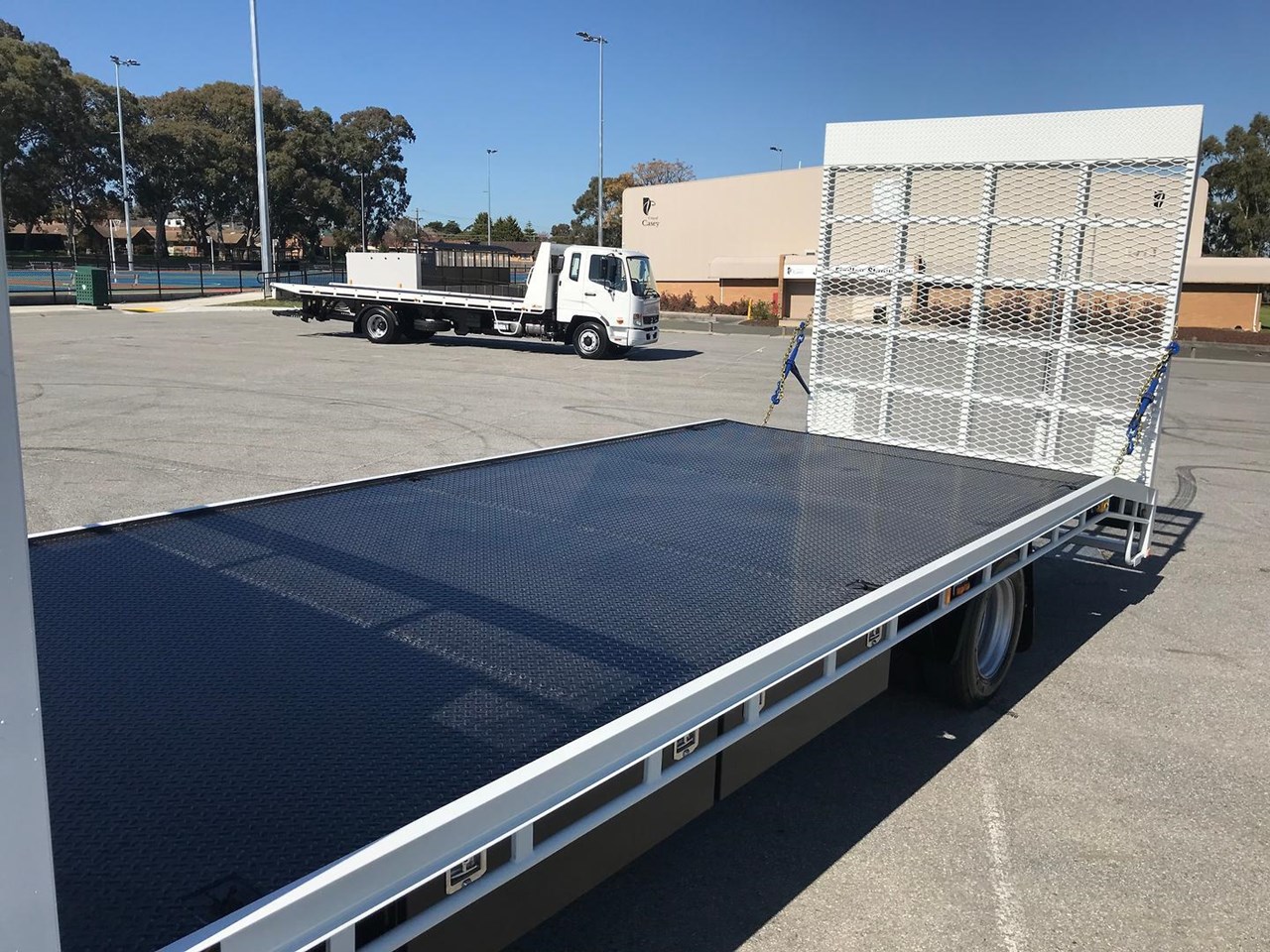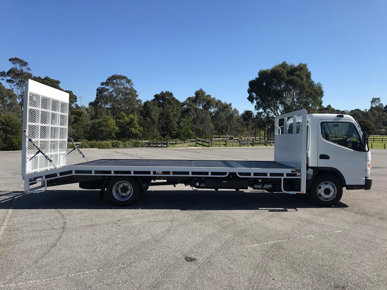 The Beavertail body is 6400mm long x 2440mm wide 3mm checker plate floor with 6x keyways in the floor and one-piece hydraulic mesh rear ramp. You have the option of choosing either a 4495kgs GVM Car license or a 8000kg GVM light truck license. The factory standard warranty for this truck is 5 years or 200,000 kms, which is a testament to its quality and durability.
